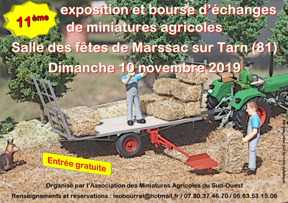 Bonjour à tous Dimanche 13 novembre aura lieu la 13ème exposition et bourse d'échange de miniatures agricoles de Marssac. Pour cause de travaux dans la salle habituelle, l'évènement est cette année délocalisé à la salle polyvalente de Castelnau de Lévis (A 5km de Marssac). Nous affichons d'ores et d...