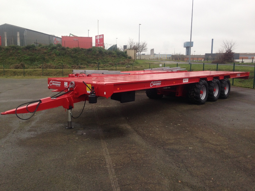 Bonjour, je possède sur l ' exploitation 5 plateaux de ce type de marque legrand. Les points positifs sont: peu tirant 120CV suffit à le tirer mais attention sur la route à charge, pneu en 560 donc peu de tassement et garde au sol inférieur à 1.10 m et les pneus ne dépassent pas du plateau. Les points négatifs : attention au déport arrière dans les virages et il faut prendre très large car ça braque pas du tout.