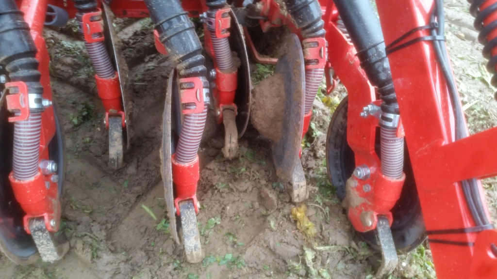 Autre problème, le 2ième et 23ième disque ne sont pas indépendant comme le 1ier et le 24ième. Il n'est donc pas possible de les terrer plus bas que les autres, or, comme ils sont situés derrière la roue, leur travail est trop superficiel ce qui implique une levée plus irrégulière et non rectiligne.