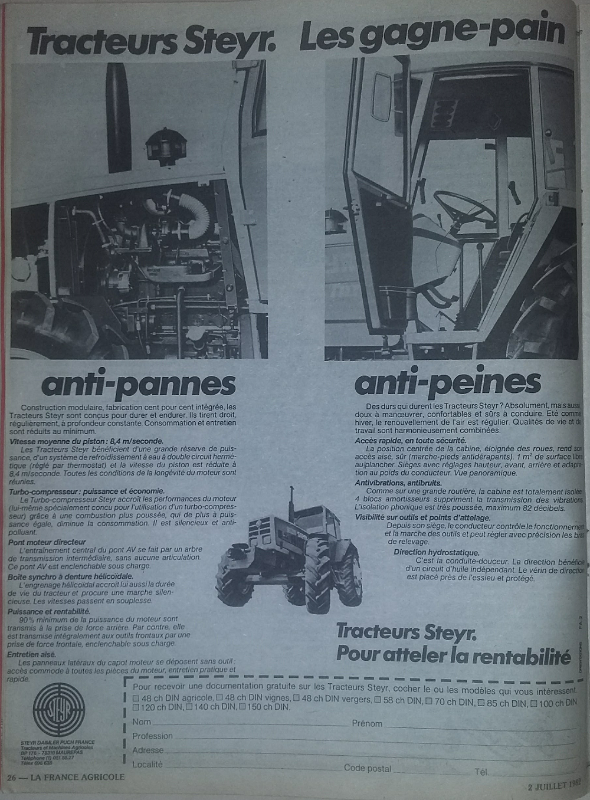 Sympa ces anciennes publicités.. En roulant encore régulièrement sur certains des tracteurs présentés ci dessus et en voyant les publicités on se rend compte que les standards de confort ont sacrément évolués en 25, 30 ans..