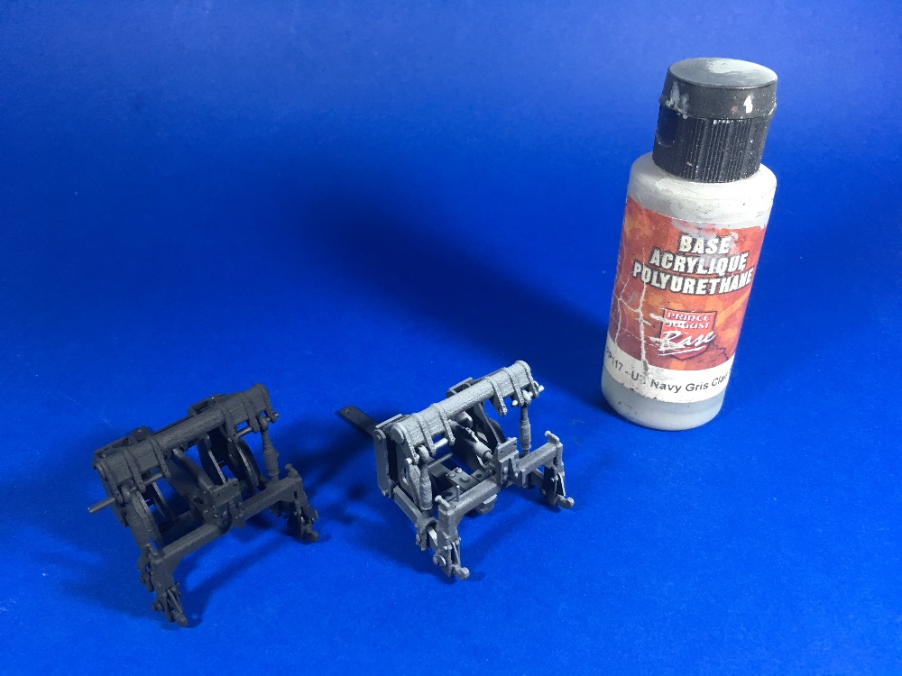 2) La technique de peinture zénithale est celle que j'ai choisie car elle met automatiquement tous les détails en évidence pour obtenir du réalisme. Le travail d'apprêt nécessite donc deux couches : une sombre et une claire. C'est la partie la plus facile