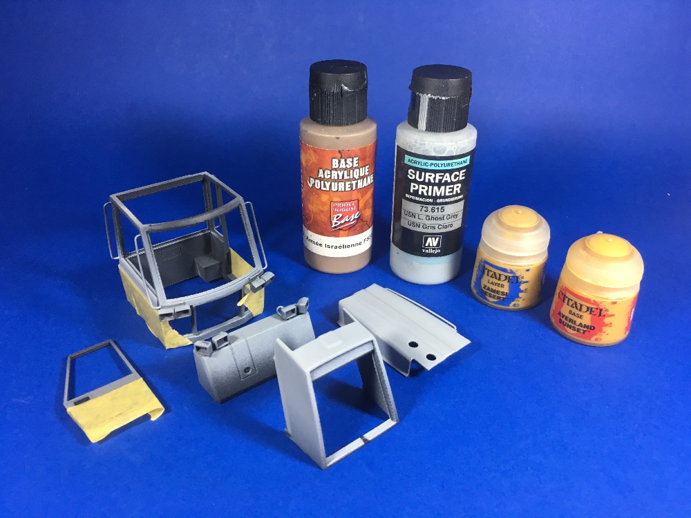 La cabine étant bicolore, le masquage va s'avérer obligatoire et minutieux pour bien aligner la démarcation entre le jaune et le noir !