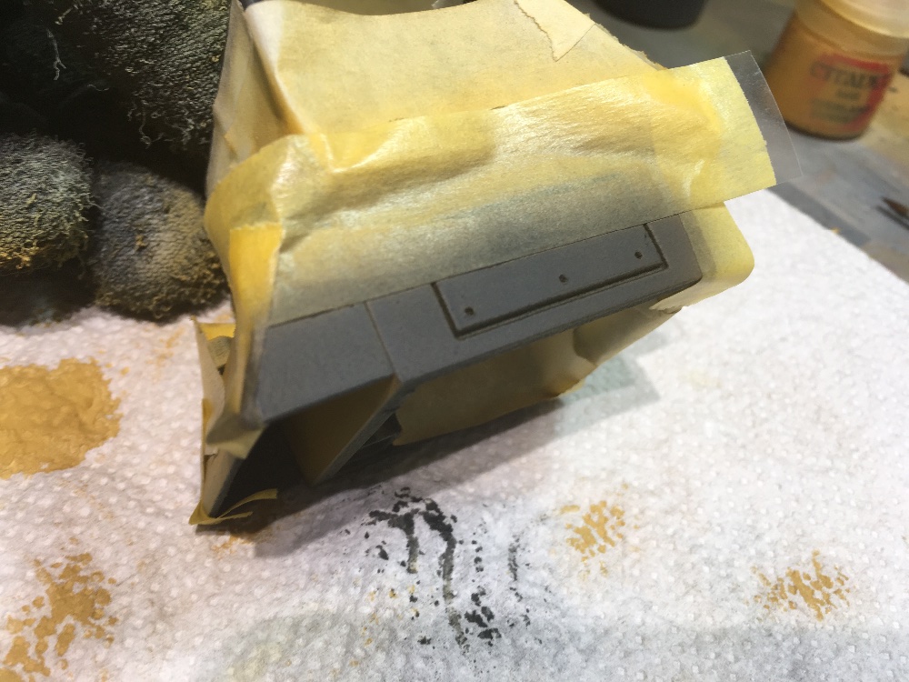 Comme je voulais une peinture légèrement éraillée, la couche de laque, passée à l'aérographe, est fine pour un aspect précis (L)