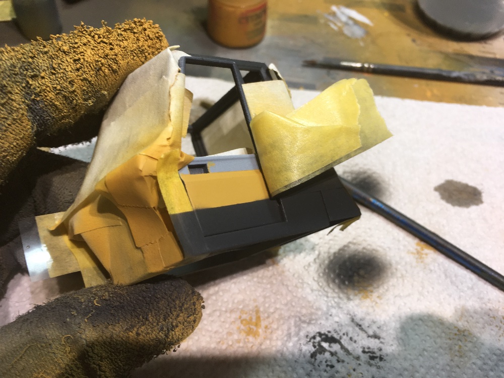 La photo précédente montre la cabine peinte en jaune et avant que le bas ne soit peint en noir.