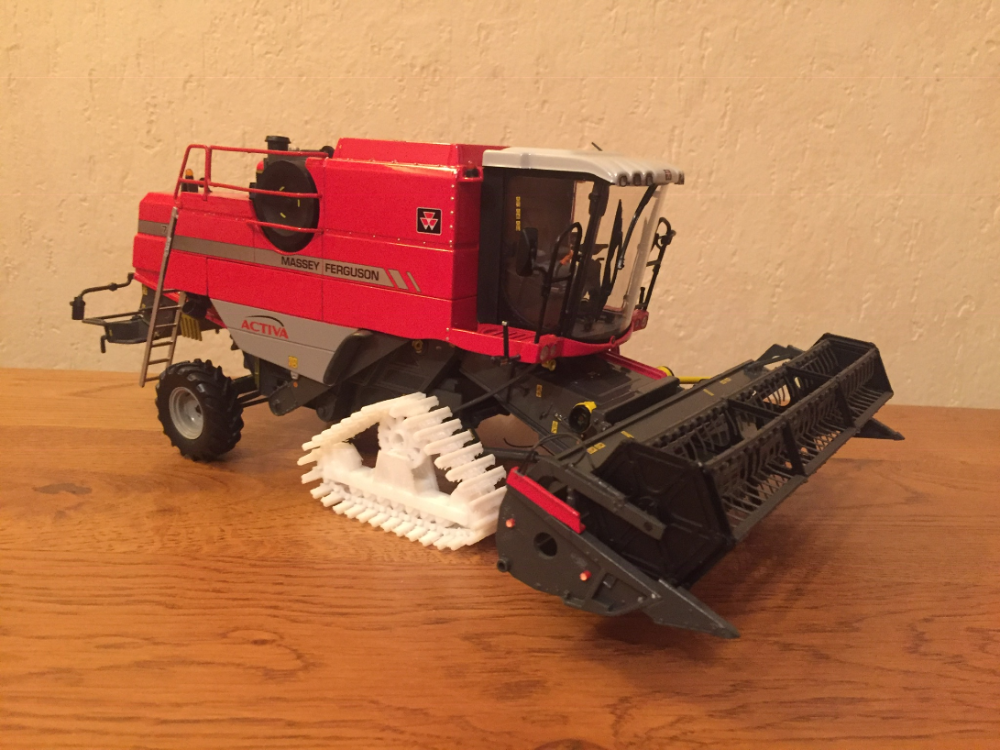 Une batteuse fiatagri L521 à chenilles avec cueilleur à maïs 6 rangs capello et sa sœur, une New holland L517 standard donc roues et coupe à blé. C'est les même à 1 ou 2 détails près c'est pour sa que je fait les 2 en même temps.