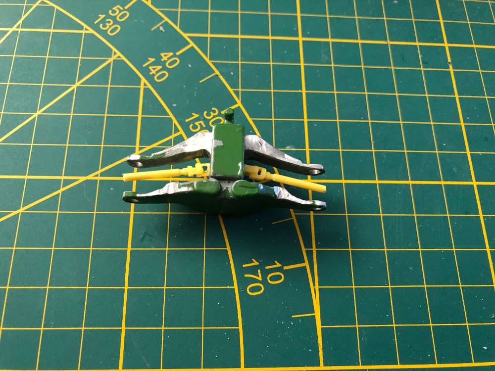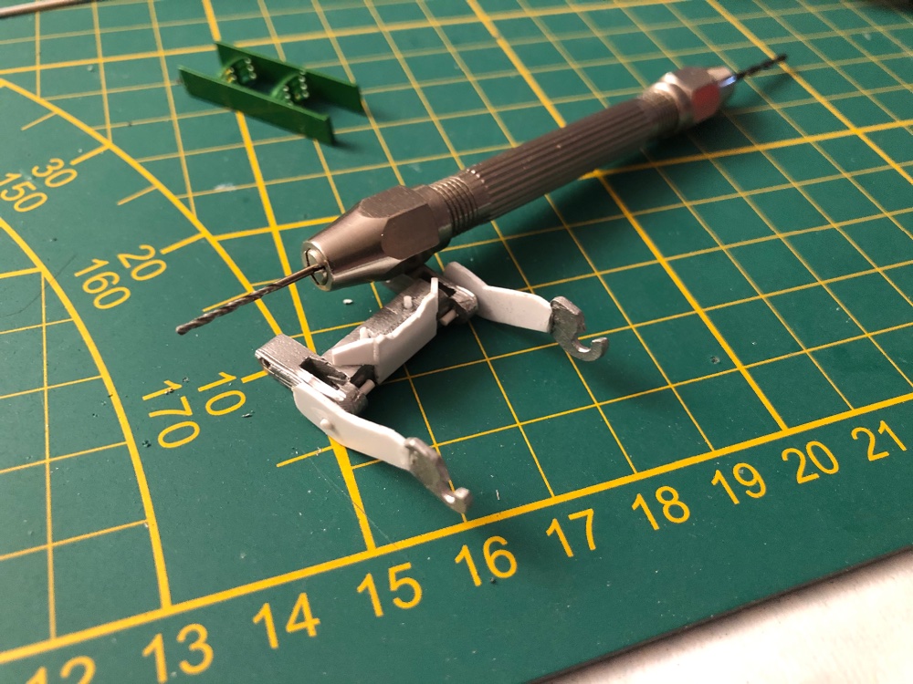 Pas mal de travail là dessus pour arriver à quelque chose de plus fin, j’ai carrément attaqué à la meuleuse pour évidé la partie entre les bras puis avec le disque du dremel pour finir avec une fraise et la lime...