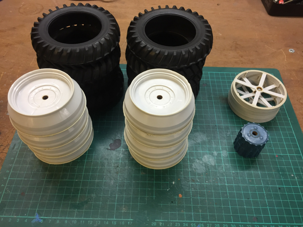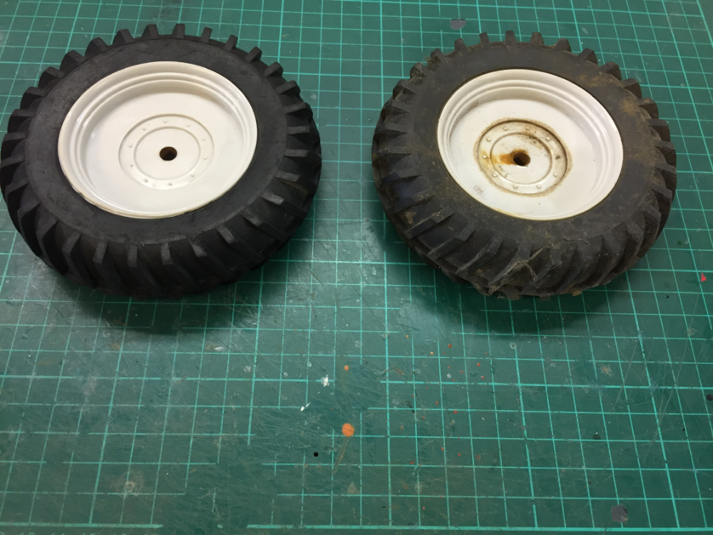 il à perdu un pneu donc passage en jumelé, ,nettoyage des pneus, jantes, réducteurs et entretoises de roues.
