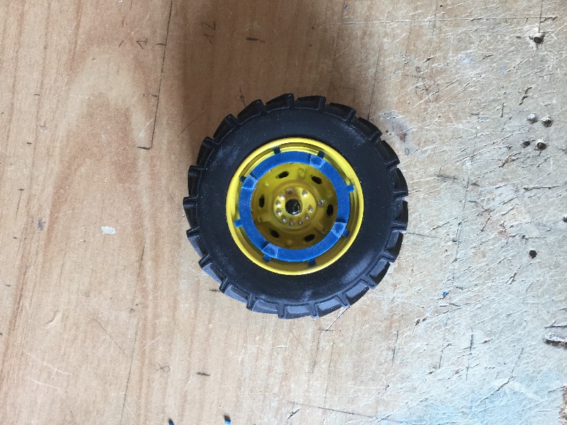 Alors pour les roues c’est le pneu et la jante de chez artisan 32 au quel j’ai incorporé un voile en résine de chez « fendt 624 » et j’ai percé les trous comme sur un vrais voile en fonte 😊
