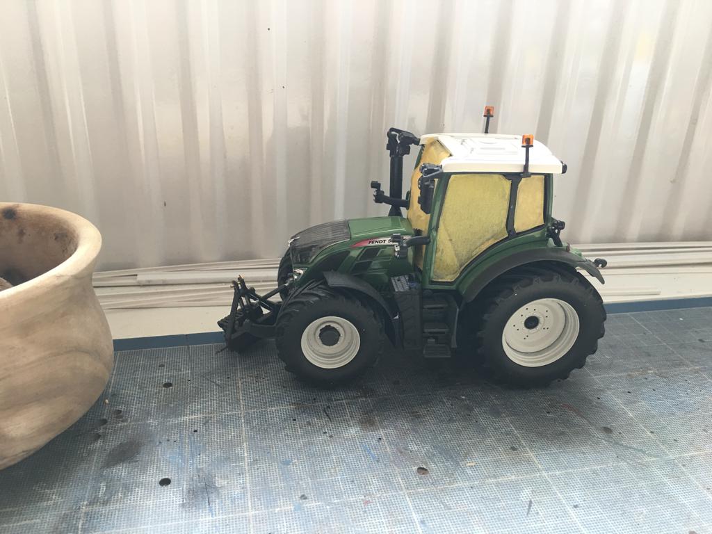 J'ai entierement camouflé les vitre du tracteur pour qu'elles soit le plus propre possible je ne voulais de vitre sale.