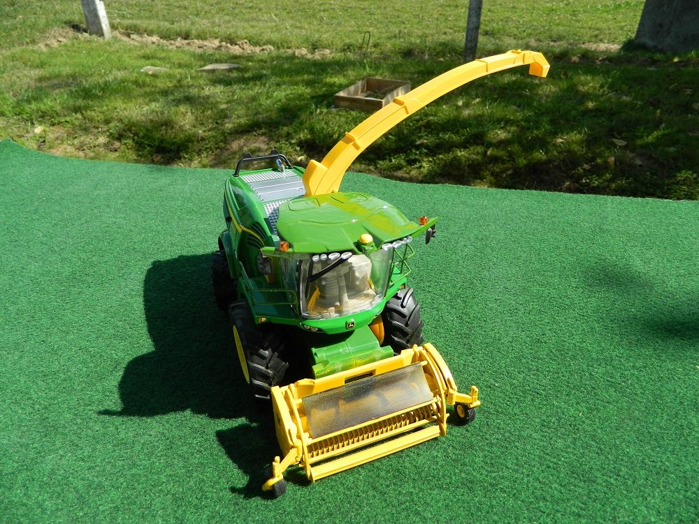 #1voici quelques photos de l'ensileuse Britains que j'ais modifier donc j'ais rajouté rambarde,feu de travail,changement des feu arrière,rajout de rétroviseur et gyrophare,peinture pick up et goulotte ,extincteur peint et changement échappement pour un chromé reste encors quelque détail a ajouté mais elle déjà plus belle allure comme ça