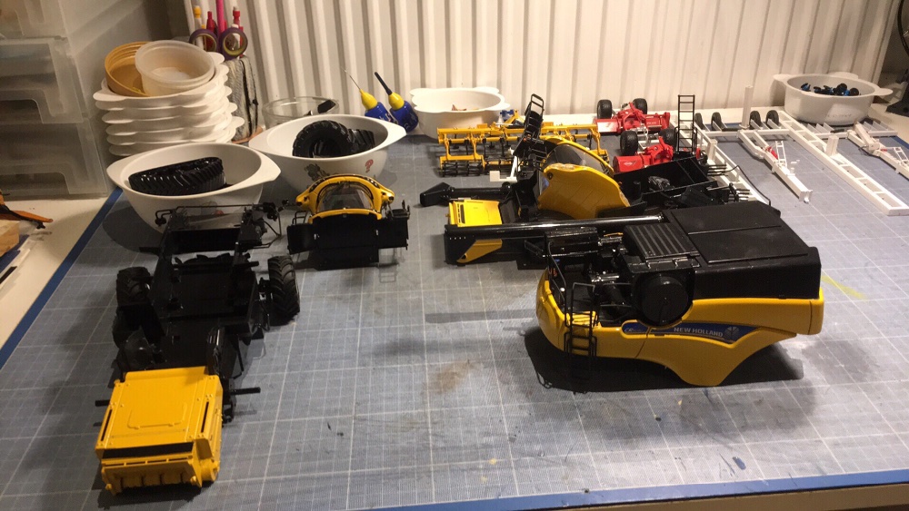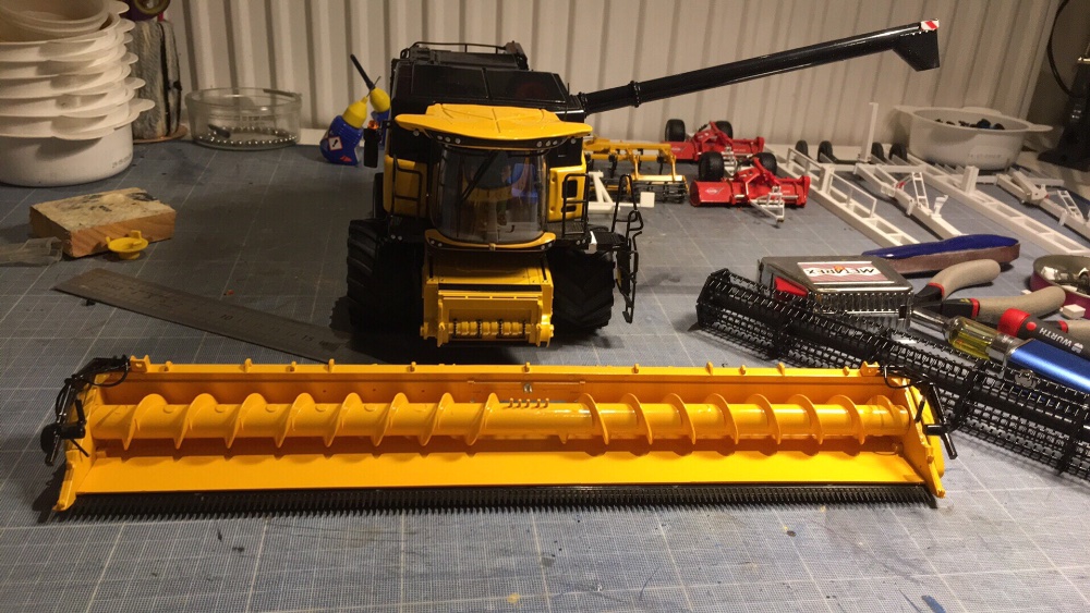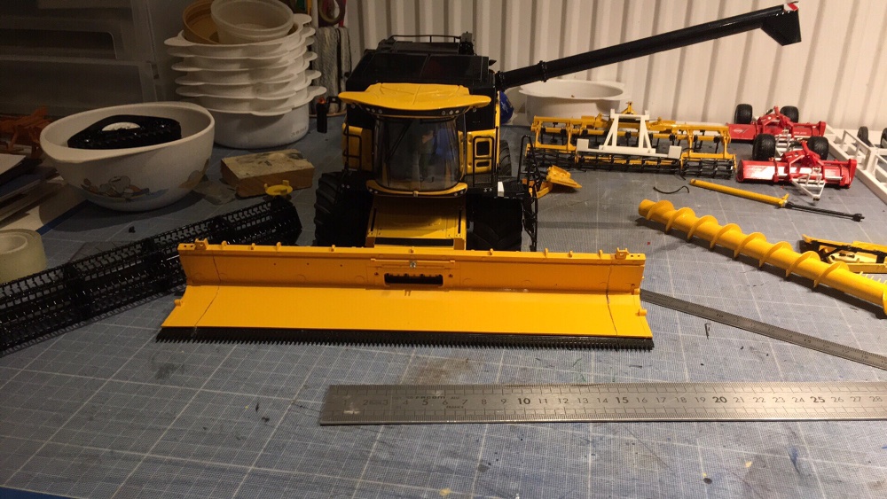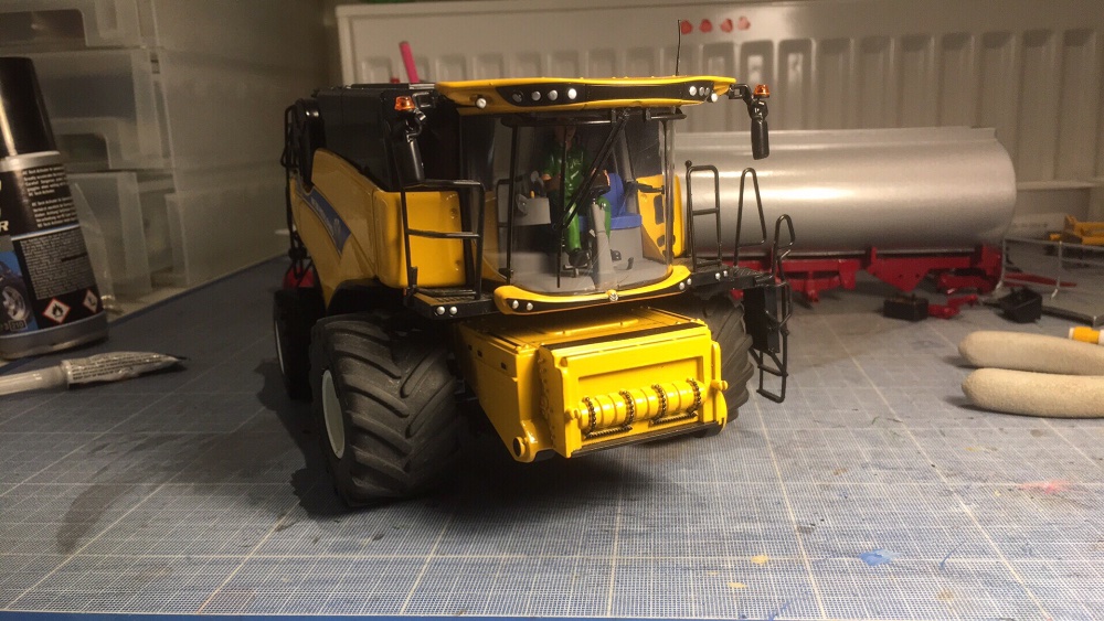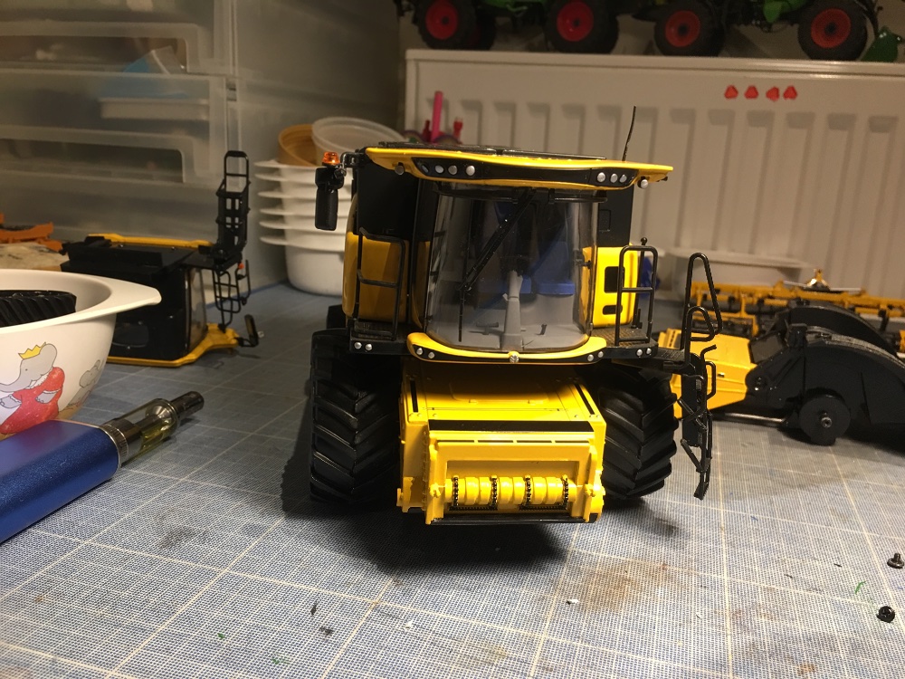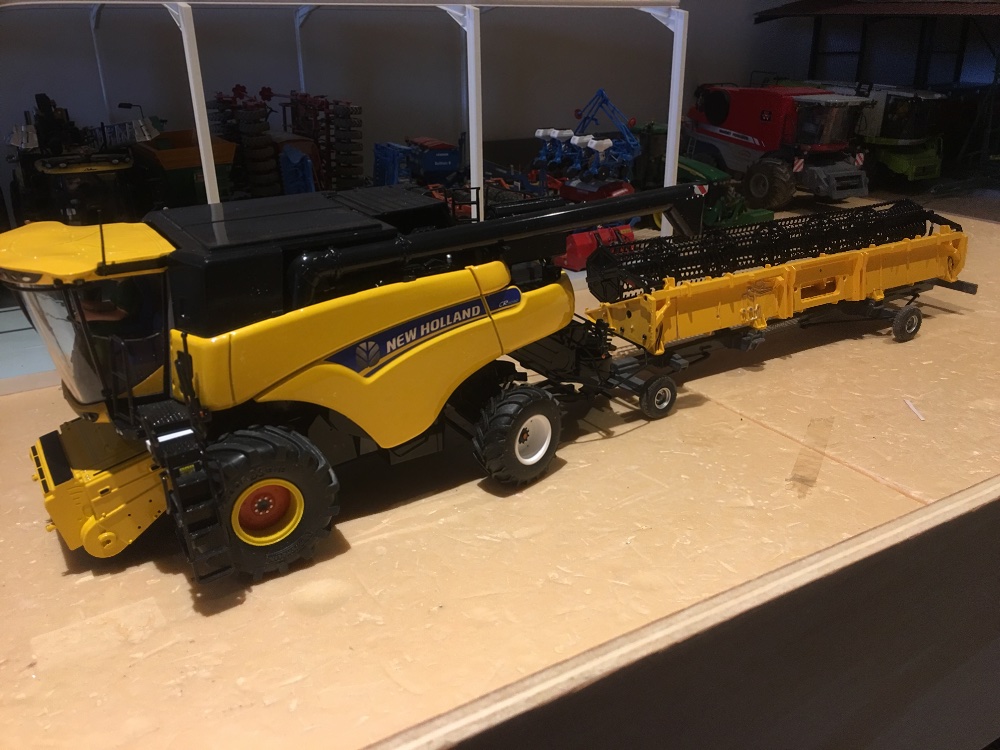 voila il y a un moment que ça me trottais dans la tête avec deux batteuse en faire une !! Je suis partis de la CR 9090 UH et j ai ajouté une cabine de CR 10.90 UH, comme je voulais que cette batteuse finisse sur la SCEA en lieux et place de la rotary le passage en pneu de 1050 etait une obligation :D