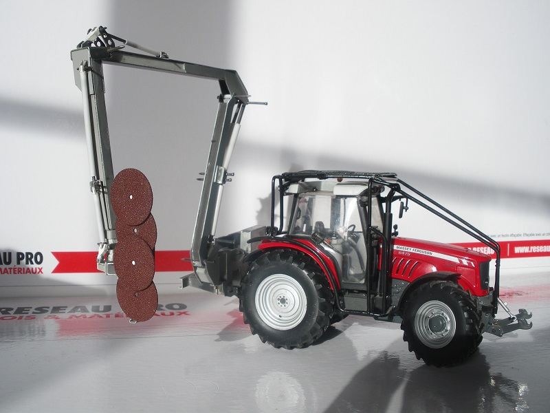 bonsoir je recrée mon sujet pour faire vivre un peu plus ce nouveau forum que l'on a temps attendu !!! donc réalisation d'une épareuse rousseau fulgor 12000 monté sur un MF 6475 uh . sur le tracteur ; réalisation de la cabine panoramique , blindage forestier et le chassie du relevage arrière pour accroché l'épareuse . l'épareuse elle , est fabriqué en profilé evergreen et alu , seul la masses additionnelle provient d'un vieux fiat