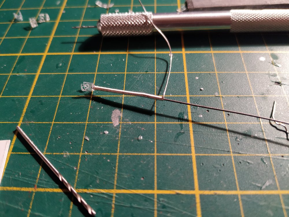 Voila ou intervient principalement l'impression 3D dans ce projet ! Et oui j'ai réalisé le ressort en impression. Certain me diront et m'ont dit "mais pourquoi tu prends pas un ressort de stylo ou meme des ressorts existants deja tout fait, et tu adaptes la dent autour ? " j'y ai pensé mais non ! Je veux que mon ressort respecte parfaitement les dimensions, donc un diamètre de fil de 0.8mm (au 1/32 bien sur). Si je veux une dent qui puisse bouger, l'effort dans le ressort doit etre très faible. Or, si je prends un ressort en acier ou autre métal, je me retrouve avec un effort beaucoup trop important, environ 25kg pour avoir faire le calcul, une fois le ressort comprimé.