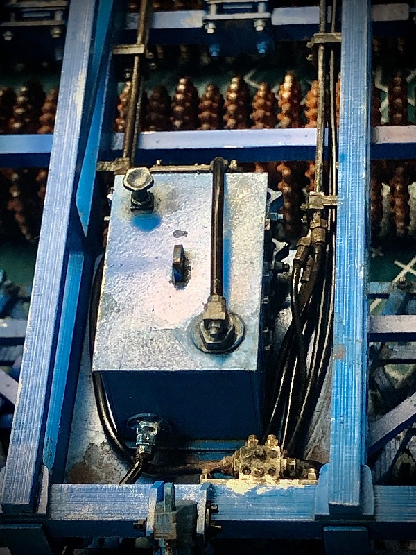En passant on assemble ce qui a été peint à part (prise de force, multiplicateur, vérins…) et la grosse partie de plaisir concerne l’hydraulique et ses flexibles. J en ai même fait un schéma pour m y retrouver…