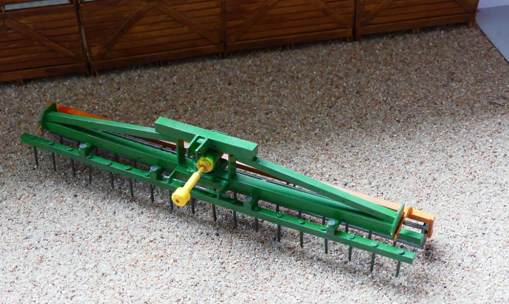 Ici, en parallèle du Simba, du 100% Scratch avec un petit broyeur 6m trainé et semi porté pour le transport. Aussi, un tasse avant 6m en scratch hormis les disques, en impression 3D !