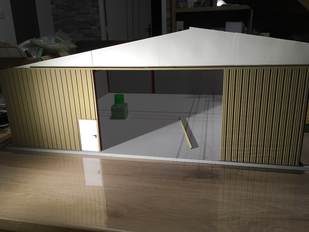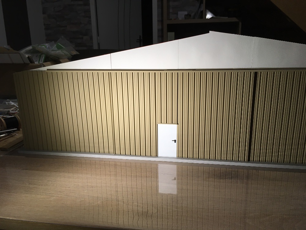 Pour les panneaux, je pars d’une plaque de plexi, je ponce un côté, puis je le peins en noir. Après de l’autre côté je vais faire des coups de cutter, et pour délimiter les panneaux entre eux je creuse avec un tournevis pour que le trait se voie plus