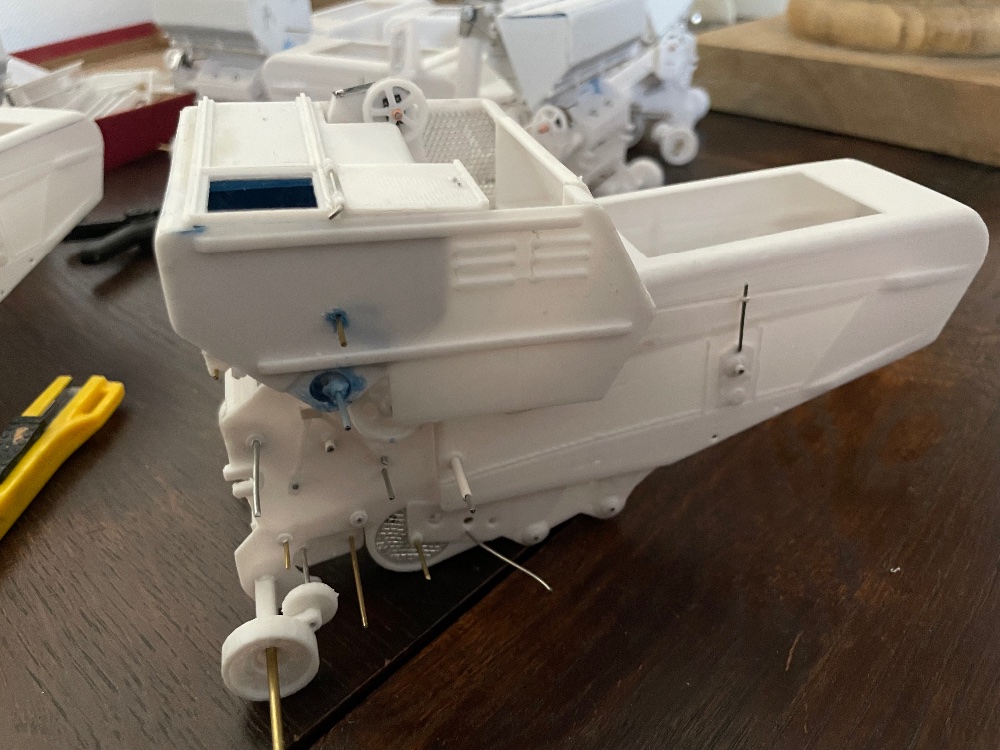 #1166Elle est en styrène , ( plaques et divers profils L , U, tubes ronds, etc ) en PLA ( impression 3D) laiton, aluminium ( plaques, grillage etc , fil de fer, corde à piano, bâton de sucette, etc