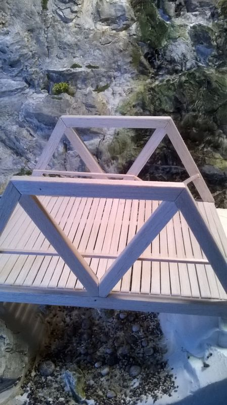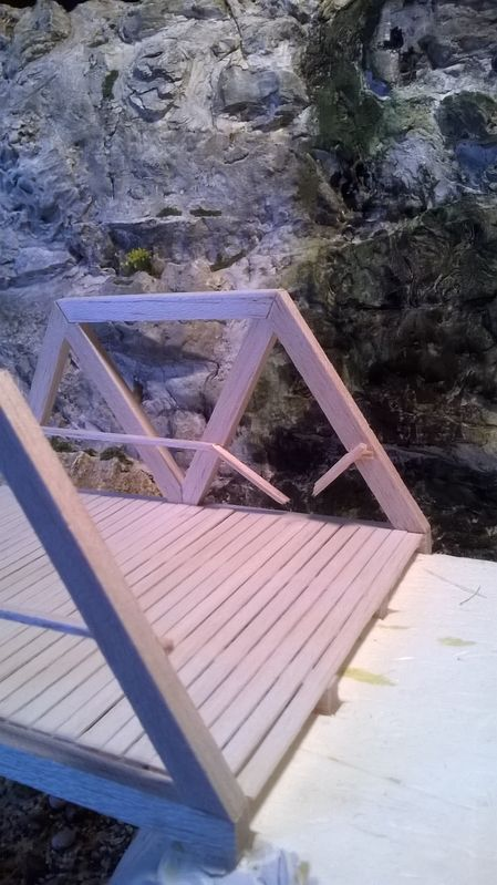 Il a terminé son diorama maintenant, mais en réel la répartition de la charge ne se fait pas, en gros , c’est une ferme de chaque côtés et la, ce que l'on peut nommé comme un entrait est un peu faible, et la charge est repartie sur une section trop faible
