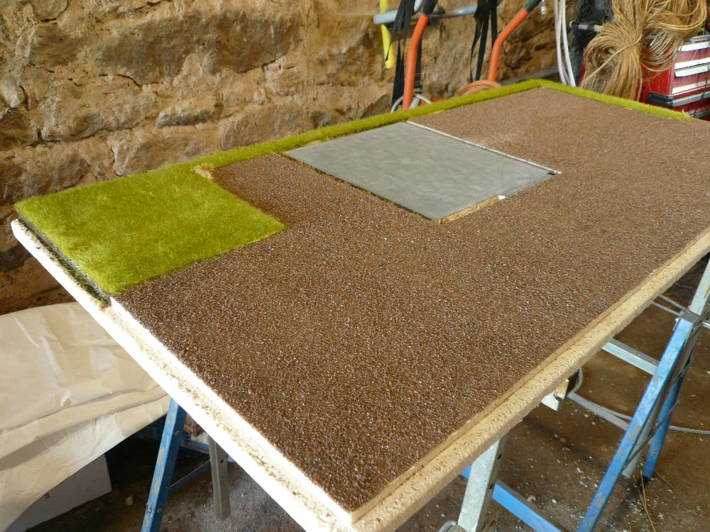#31J'ai trouvé un peu de temps pour continuer. Début du sol . Sur les parties en marron ,je vais mettre de l'herbe