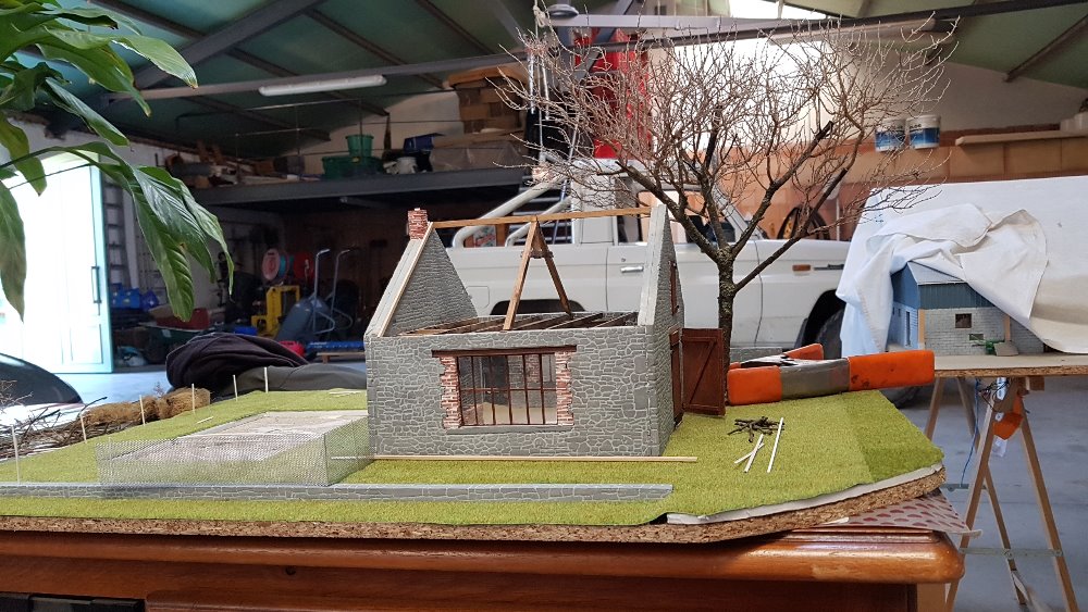 Voilà l'arbre, avec les branches collées. Reste à trouver le bon flocage (genre mousse moyenne) pour finaliser le feuillage, ou bien faire un dio automnale avec les feuilles au sol, mais dur de trouver des feuilles de marronnier