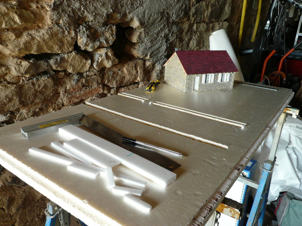 #73Le support de mon premier dio n'a pas supporté les écarts de températures. Le Dépron , c'est décollé de la plaque synthétique sur lequel il était fixé et a voilé. Donc on change le support( je reprend le même que le deuxième),on réorganise la disposition des bâtiments. Pour la maison, changement de la couleur de la toiture, retouche de la couleur des pierres. Pour la grange je vais changer également la couleur toiture. Pour le petit hangar , je pense que je vais le refaire.