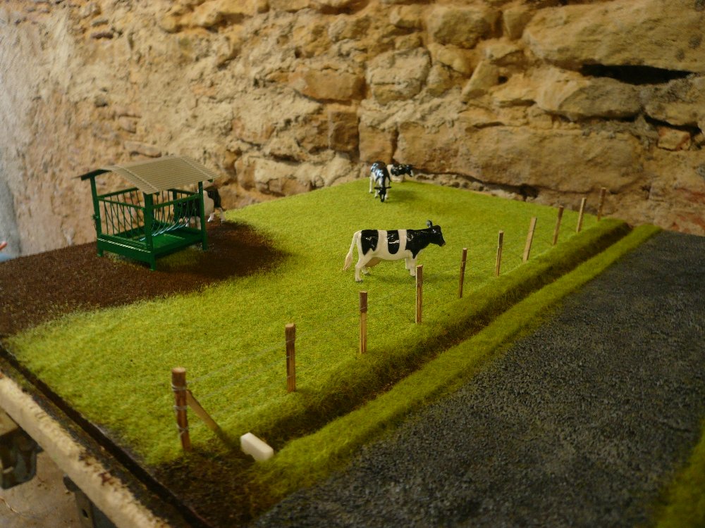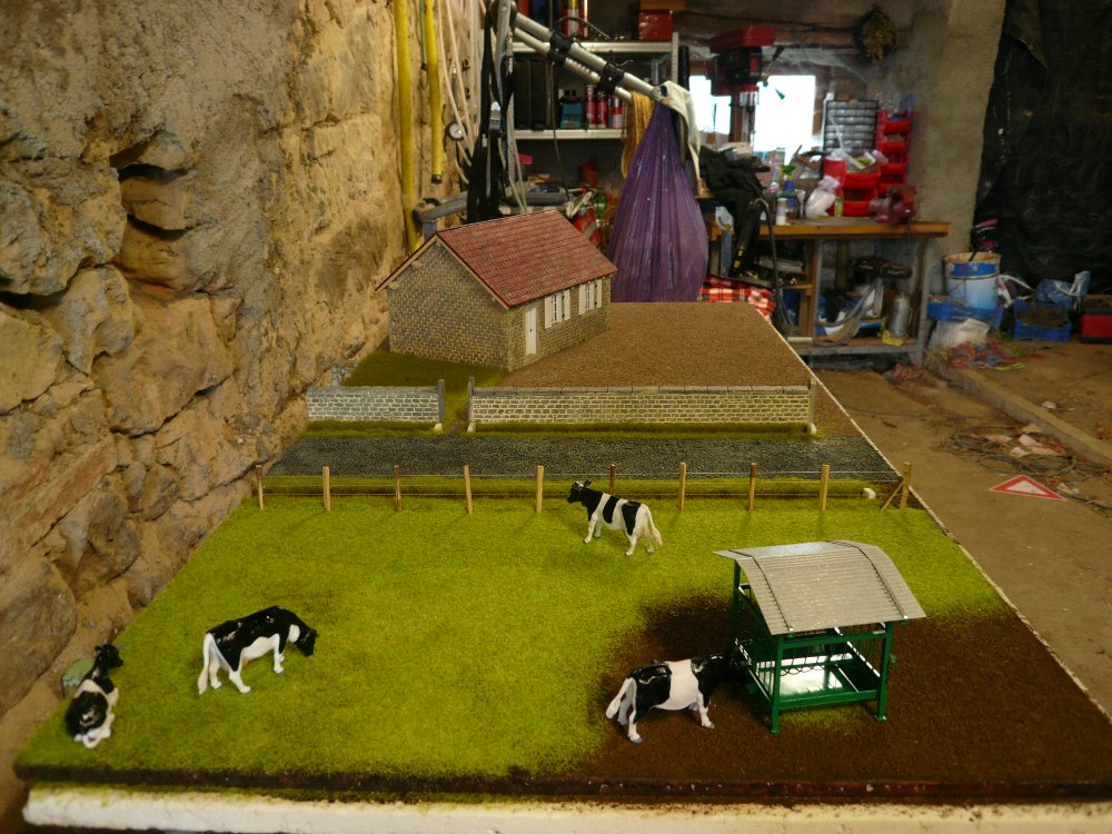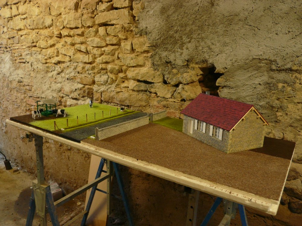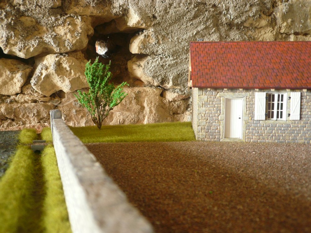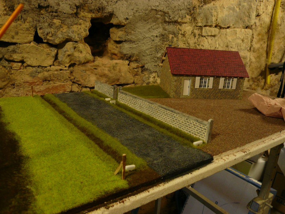 #81Mise en place de la route. c'est le même gravier que la cour. le gravier est peint en noir et j'ai refais un brossage en gris .