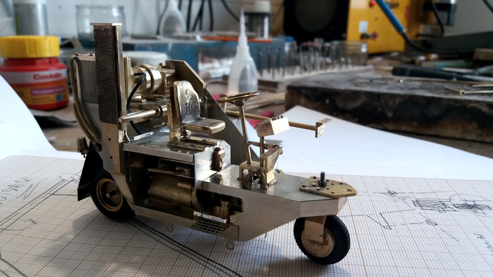 Le prototype est terminé, il est maintenant démonté, nettoyé afin de procéder à la confection des moules pour la fonderie en white-métal.Cet après-midi, nous allons commencer par le moule des grosses pièces, et demain nous ferons deux autres moules pour les moyennes et petites pièces.