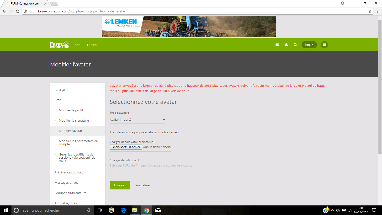 #10Tu es bien sûr à 200% que tu mets l'avatar que tu as préalablement enregistré en 100x100? Car j'ai essayé de reproduire l'opération. A part si je mets une photo à un format "délirant", genre 4000x3000, je n'ai aucun soucis. Après il faut bien vérifier que PAINT, logiciel basique de Windaube, n'enregistre pas en BMP. Ca n'a pas l'air d'être ton cas mais je tiens à le préciser.