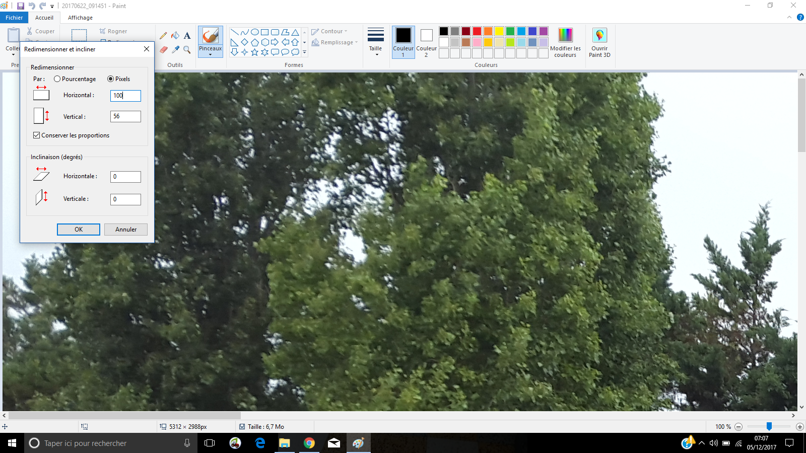 #8voilà se qu'il se passe chez moi j'ouvre ma photo sur paint pour la réduire je met 100 pixel pour le coté le plus grand et le petit se règle automatiquement