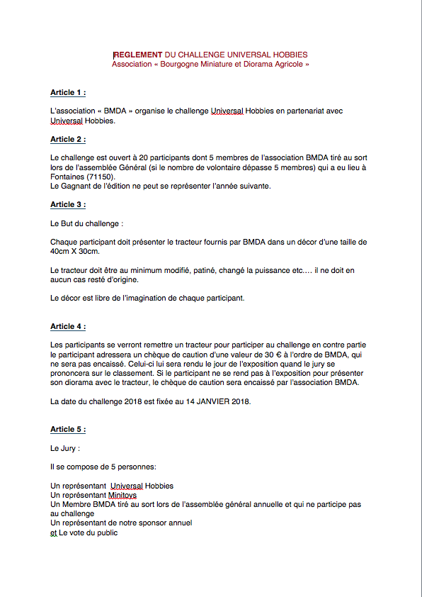 Pour cette cinquième édition BMDA renouvelle son partenariat avec Universal Hobbies, une entreprise bourguignonne pour son troisième "CHALLENGE UH".