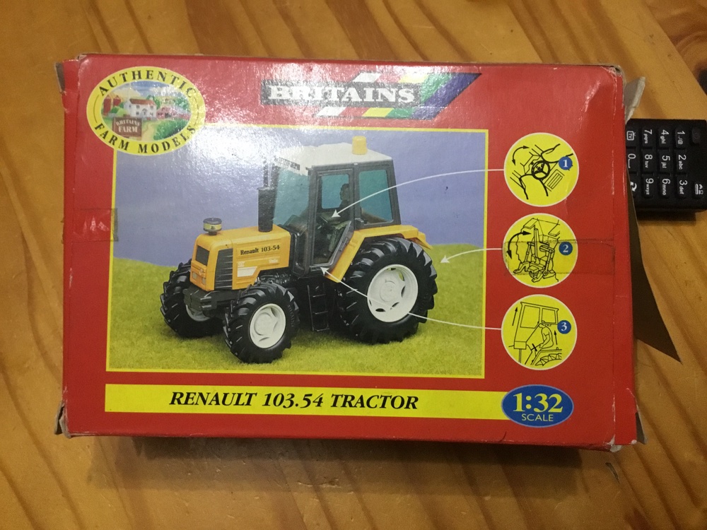 Je vends ce RENAULT 103.54 tracteur neuf avec boîte d’origine de 1998 qui est abîmée surtout dans les angles mais qui est d’origine .