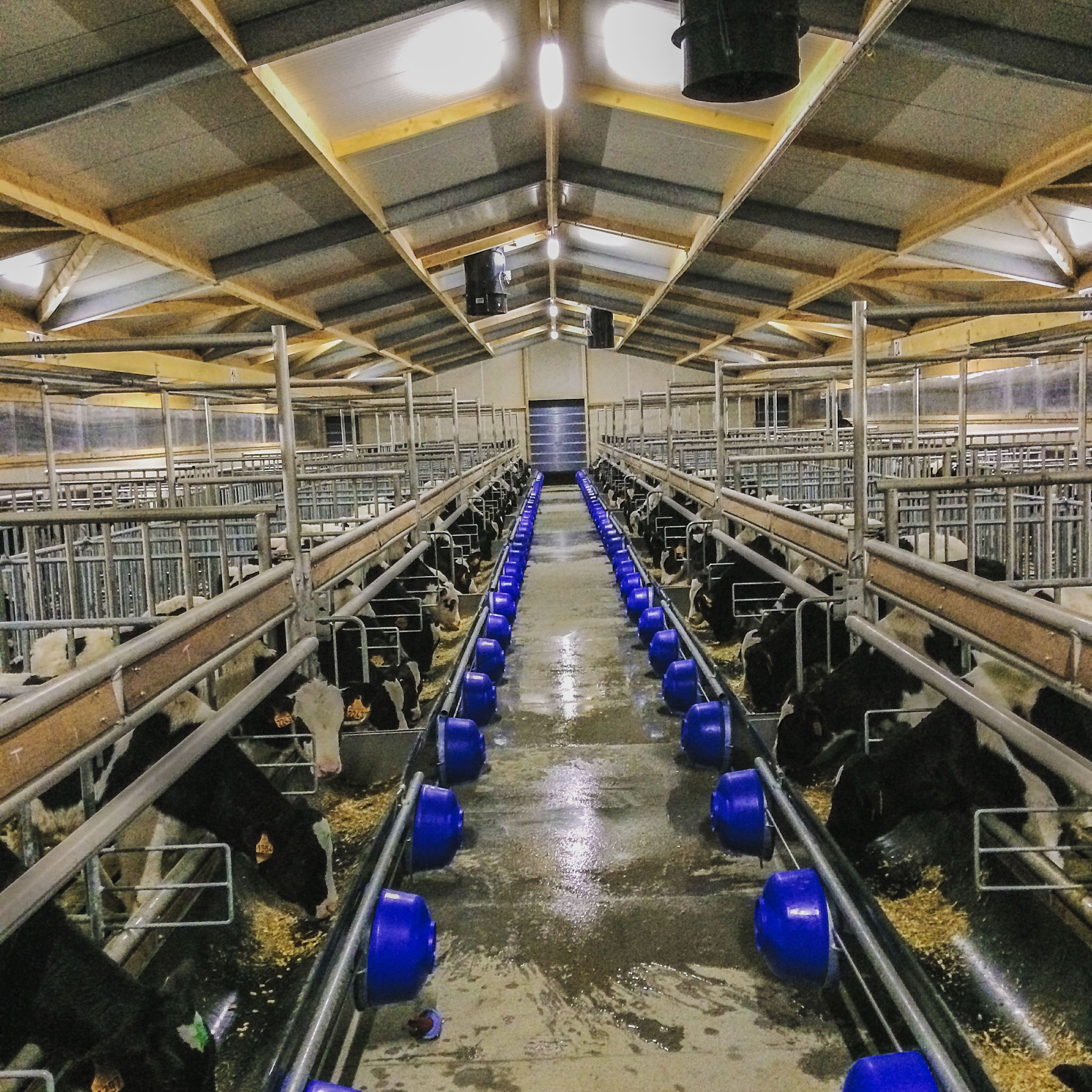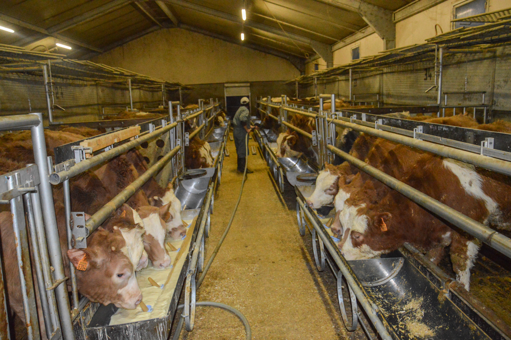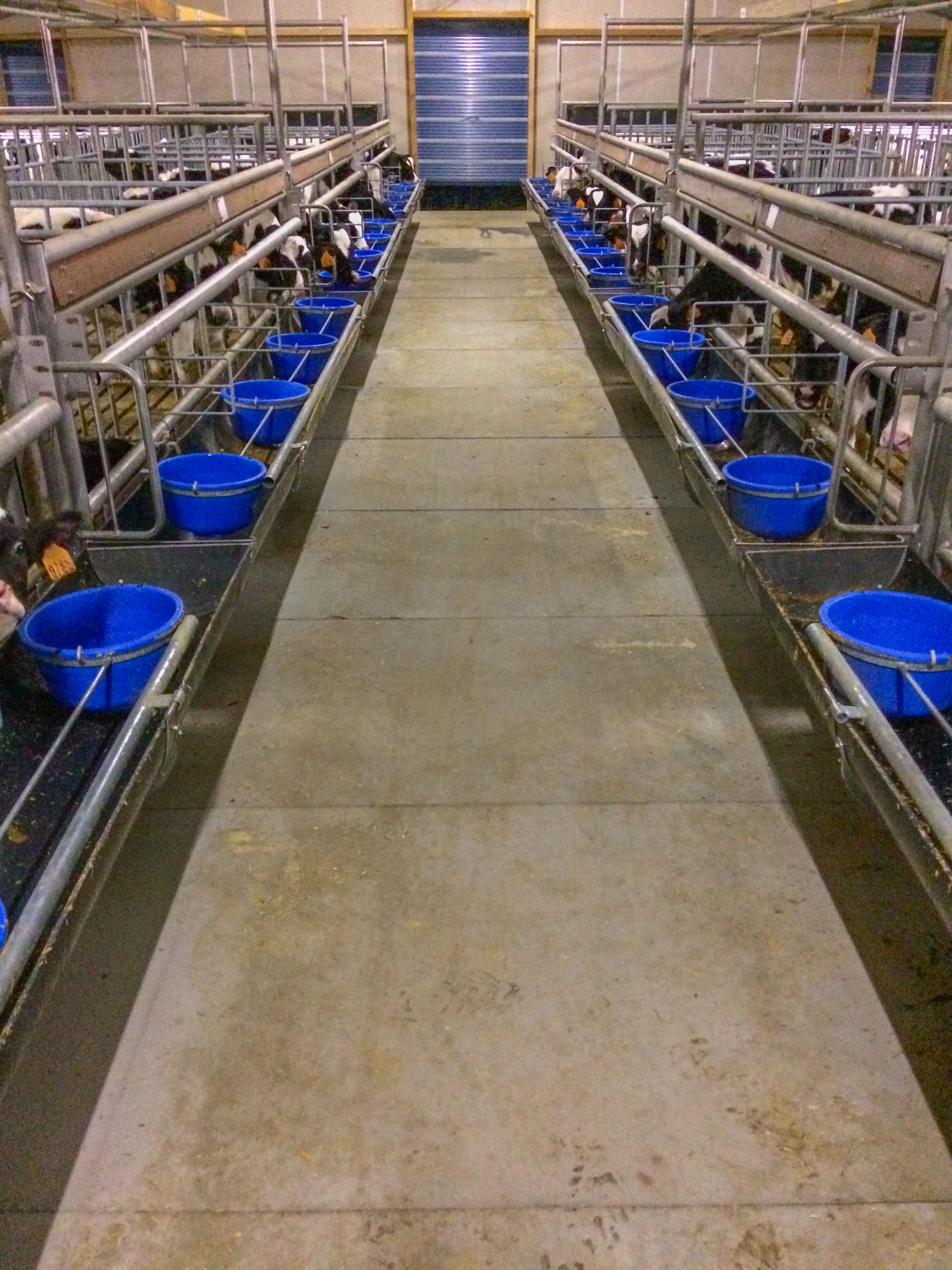 L'intérieur du nouveau bâtiment de veaux