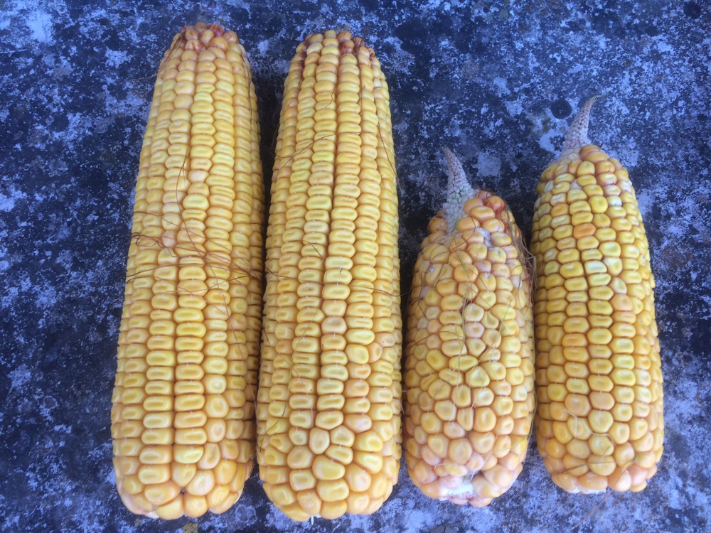 Donc retour au 25/09 ! Récolte du maïs humide pour les taurillons, avec une Lexion 760 et le Geringhoff 8 rangs, et broyage avec le 2ème aplatisseur Euro-bagging, tout neuf, de la CUMA. Rendement moyen autour de 70-75q/ha secs, mais avec des disparités importantes (ça va de 0 à 120q/ha), et une humidité autour de 40%.