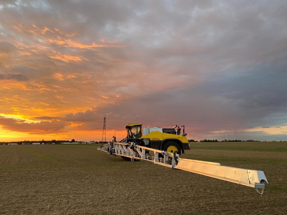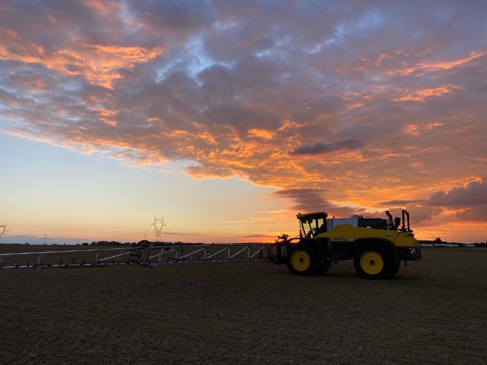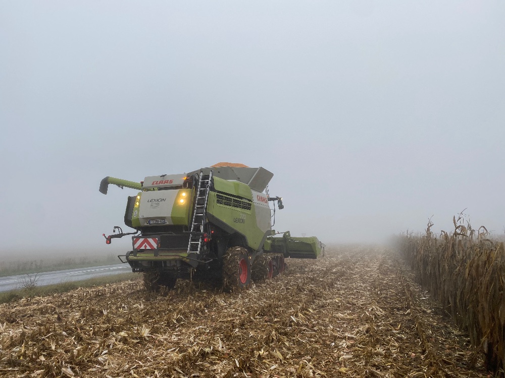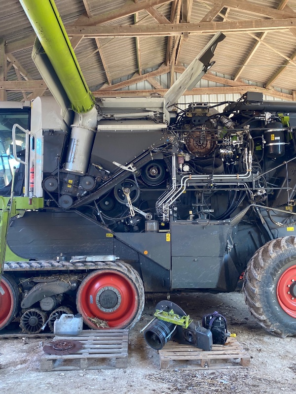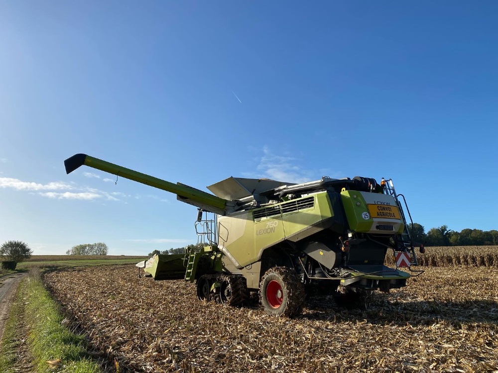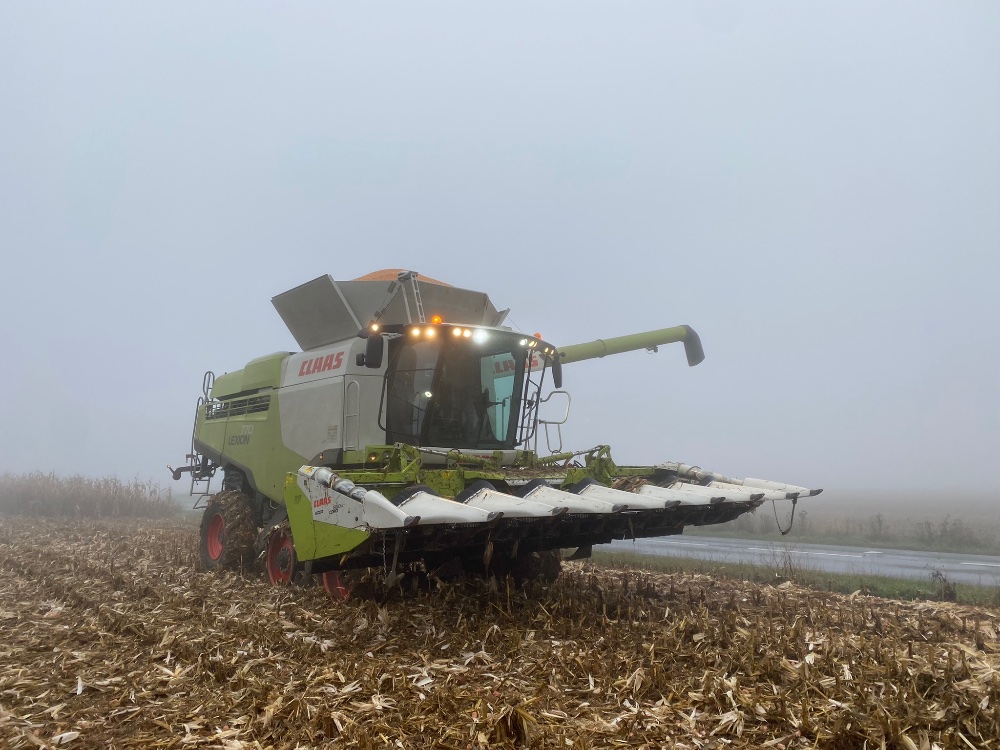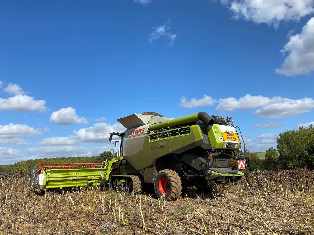 Retour en septembre avec du battage de tournesol, de maïs et de la pulvérisation. Grosse panne sur la 770 avec le flector qui a explosé, et abîmé la cloche et le volant moteur. Une 760 de prêt est arrivé de suite pour ne pas perdre de temps.