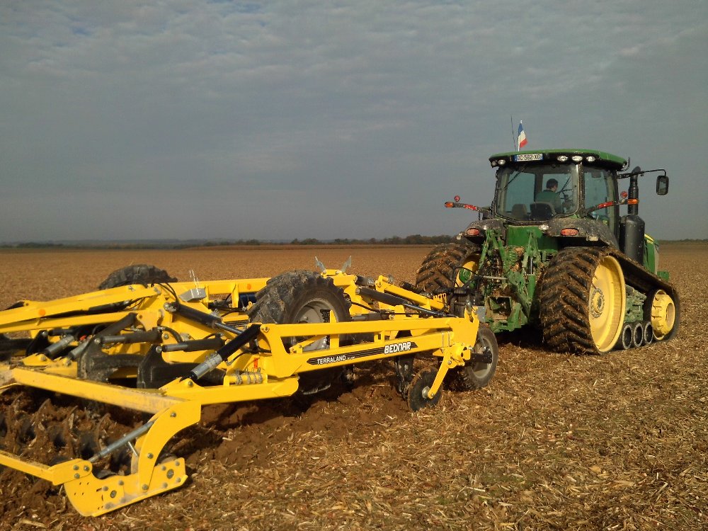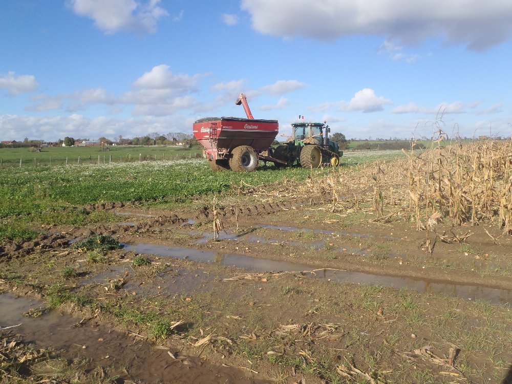 Mais quand c'est trop humide et que ça patine pas la peine d'insister! D'ailleurs il nous est difficile de travailler en traction avec un tracteur à pneus maintenant. Car le patinage est toujours plus important! Sinon la chenille résiste bien! Elle est d'origine et jamais arraché!