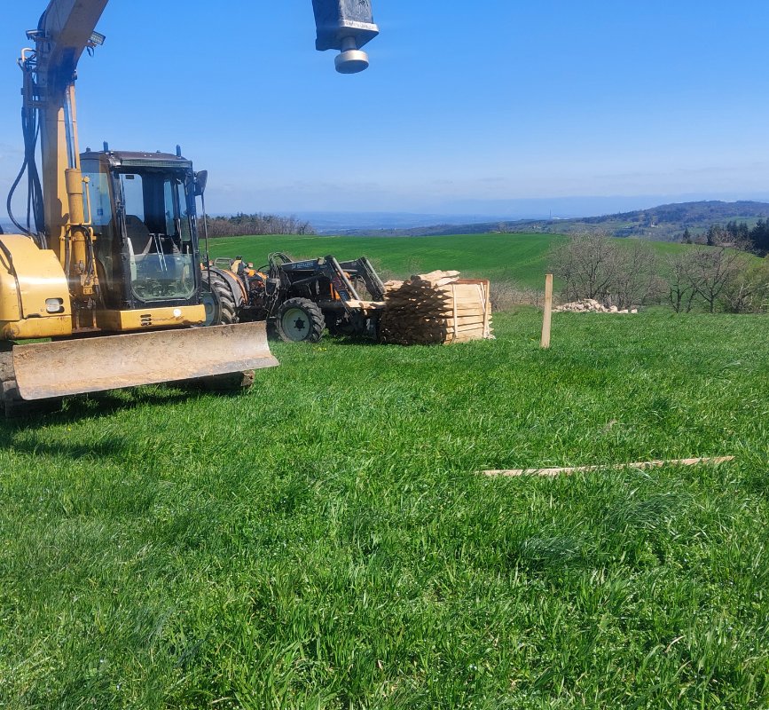 mise à l'herbe des chèvres début mars en alternant avec la pluie ,pas mal de nouvelle clôture avec un nouvel outil sur la pelle qui nous fait gagner pas mal de temps et de pénibilité en moins