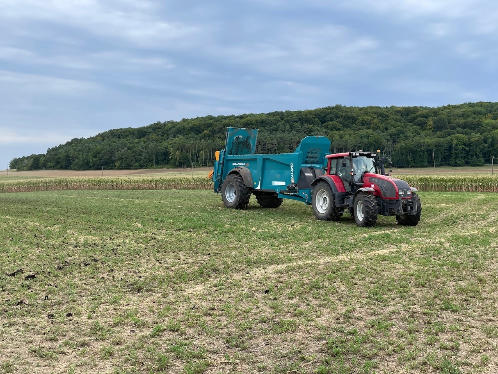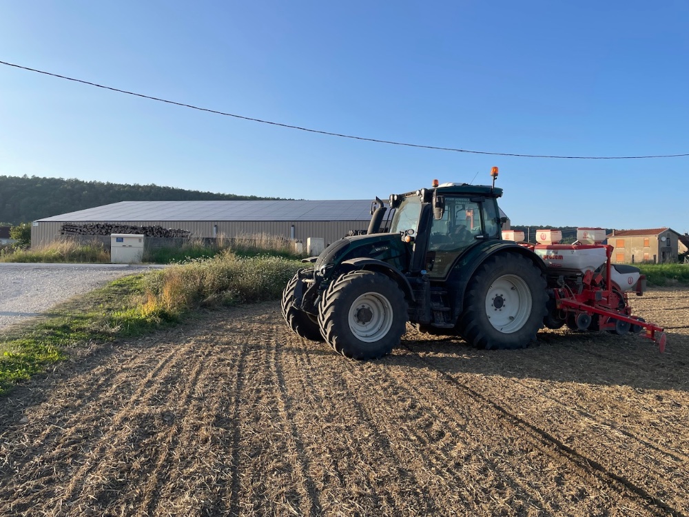 Mise en route de l’Ixtrack. 2eme coupe en prairie et 3eme coupe en luzerne et trèfle, semis des colzas, et épandage de compost !