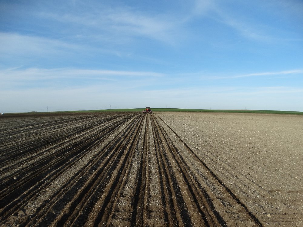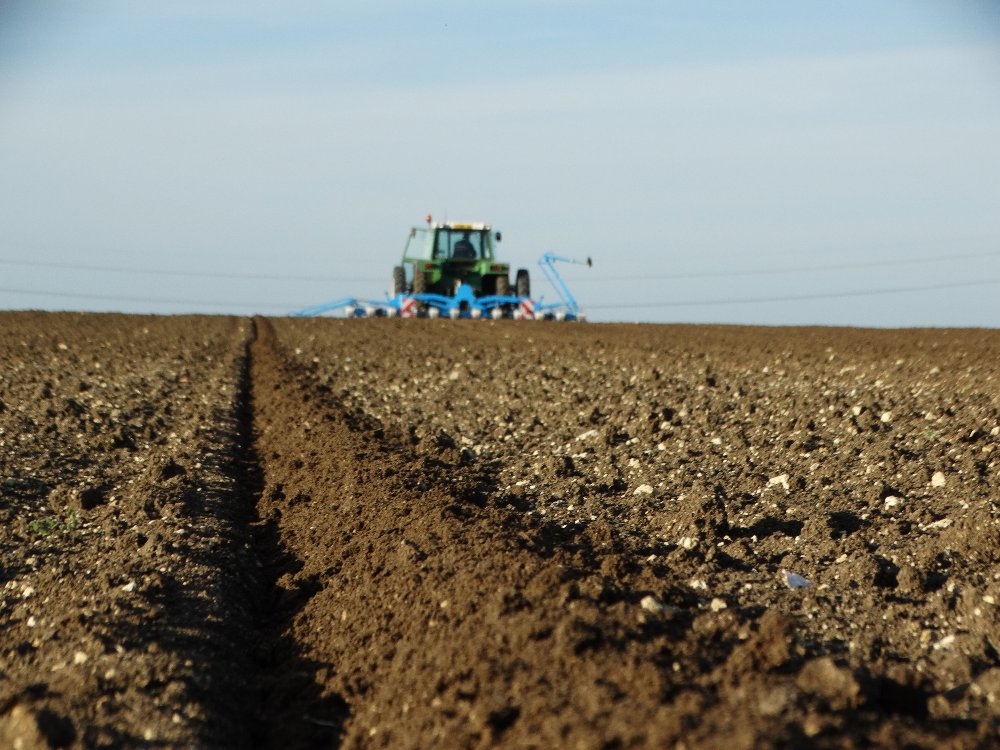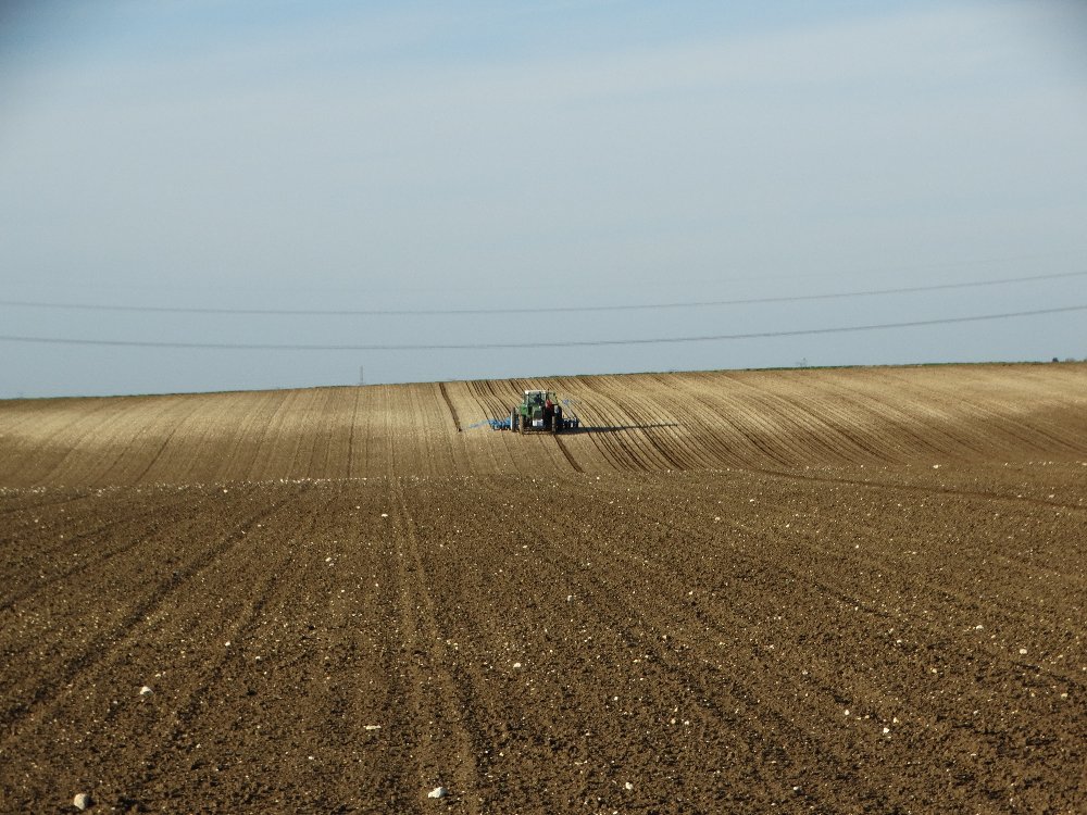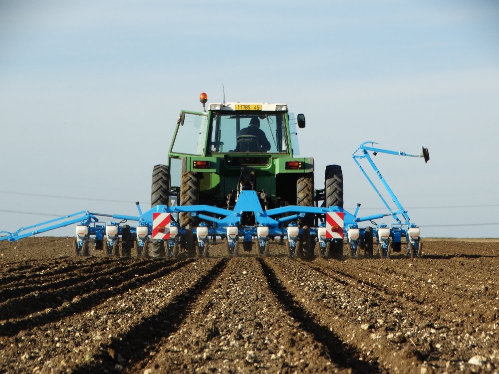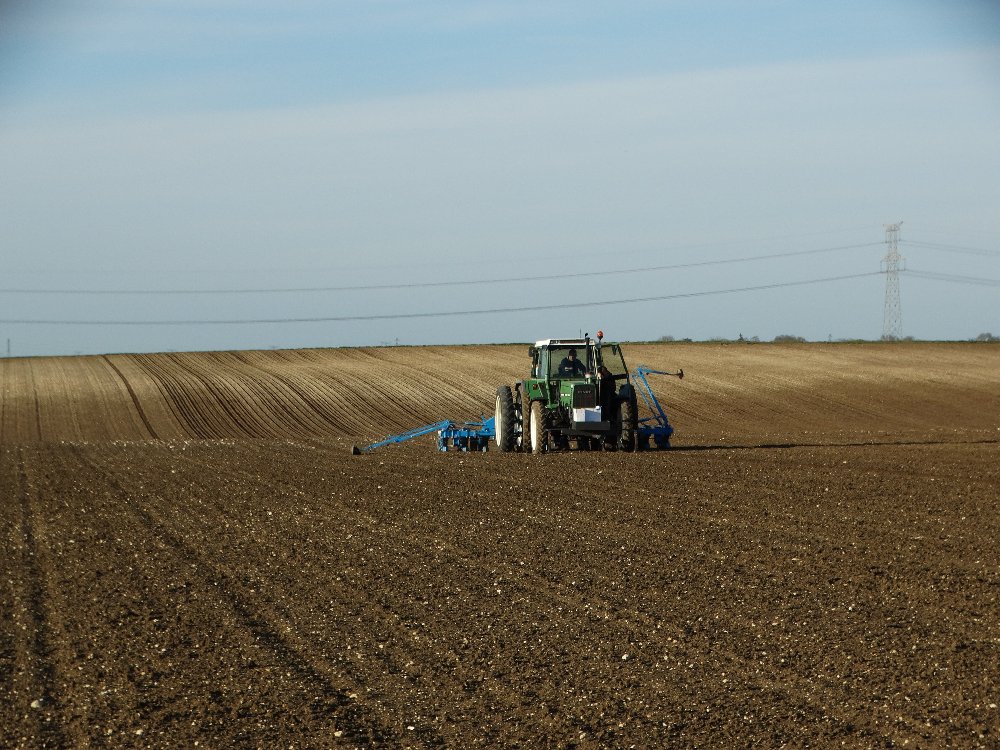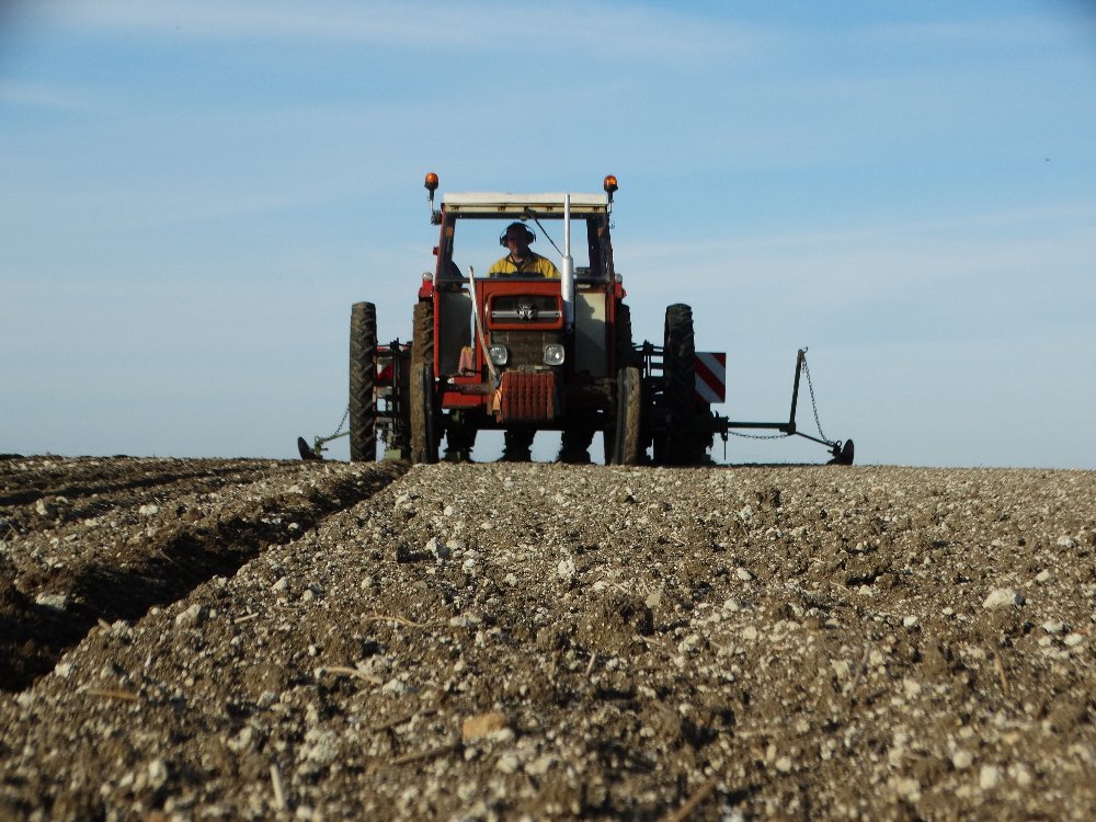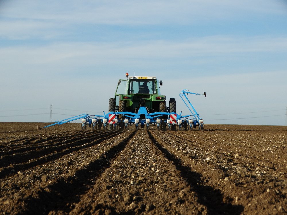 Avant la pluie, semis avec un Fendt Farmer 312 LSA. Ayant commencé sur une effeuilleuse/arracheuse, il continu son bout de chemin à 13000h aux semis avec un Monosem 12 rangs.