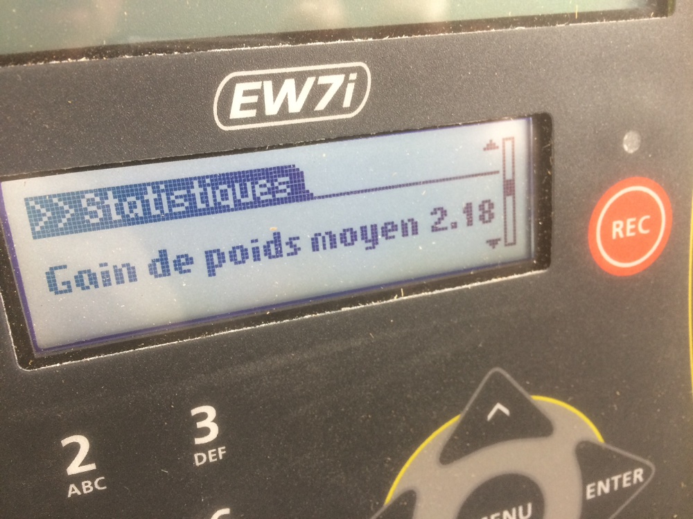 2 petites photos, avec les GMQ de la pesée de ce matin lors de la vaccination ( le meilleur monte à 3500g/J alors que le moins bon est à 1500g)