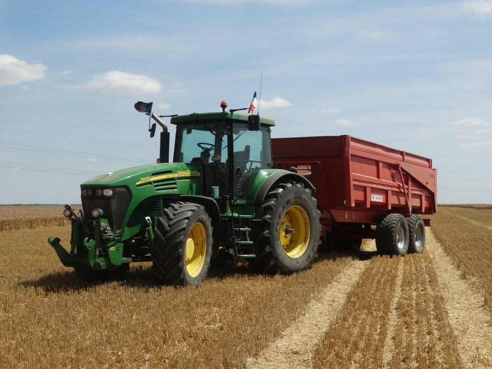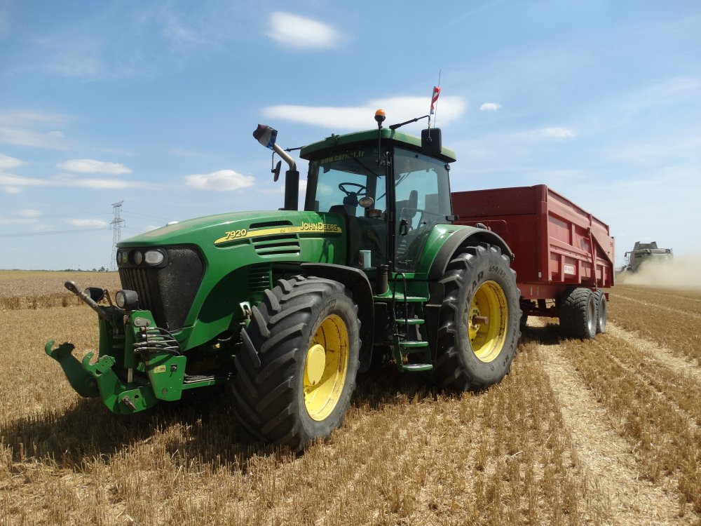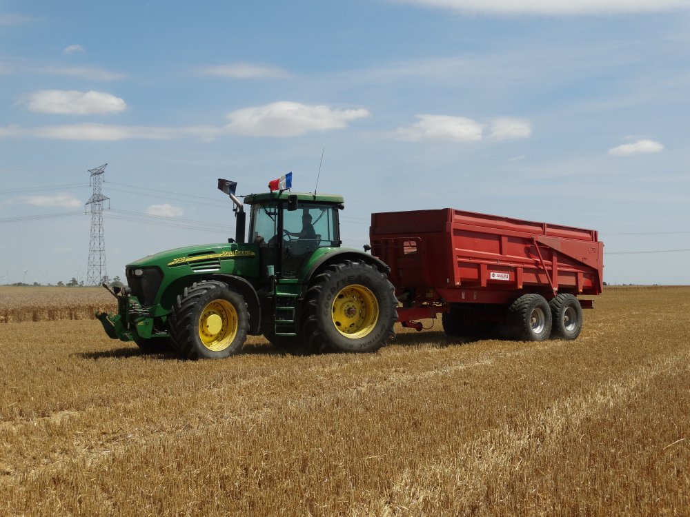 Je me permet de répondre, avec une photo d'un ensemble très similaire croisé ya quelques temps. Devant c'était un JD 6610 ( 115ch ), donc à priori les 215ch ne sont pas nécessaires, mais surement le choix du confort et d'une boite de vitesse performante !