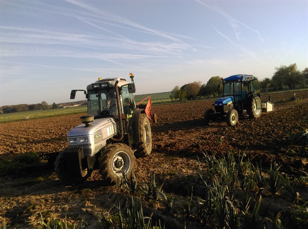 Aujourd'hui et demain, c'est arrachage des derniers poireaux. Le lamborghini sur l'arracheuse Traineau et le New holland sur la benette