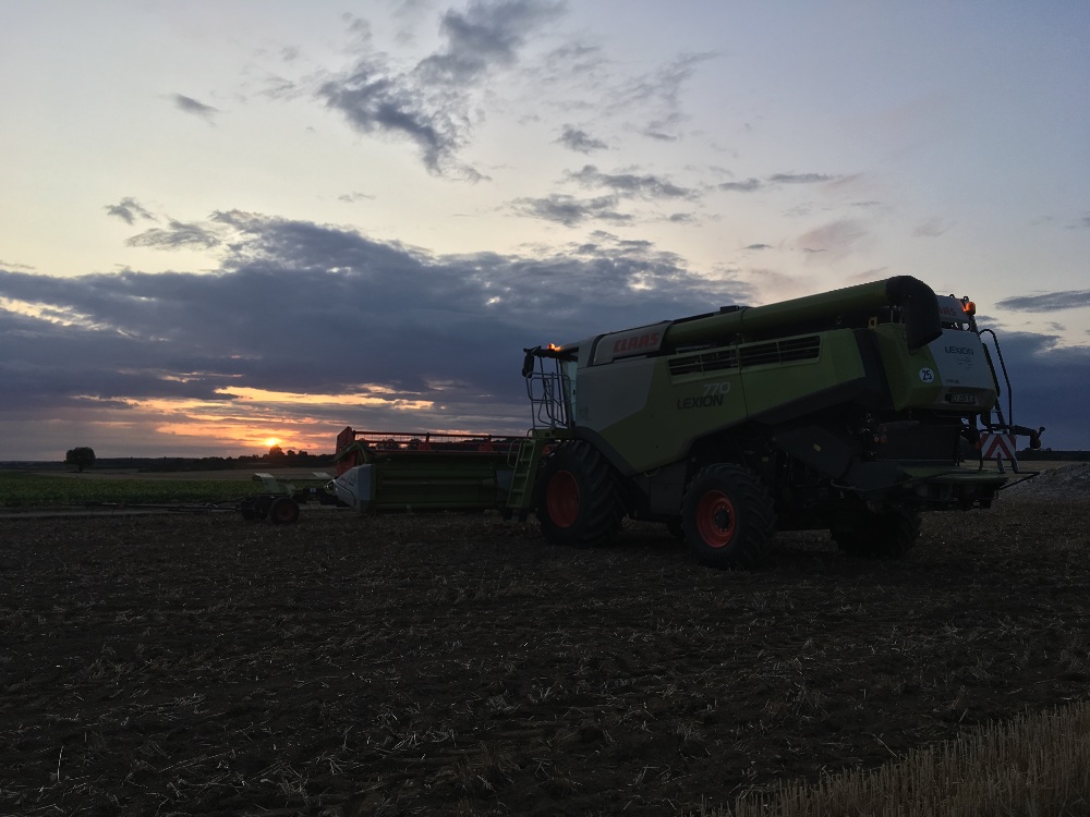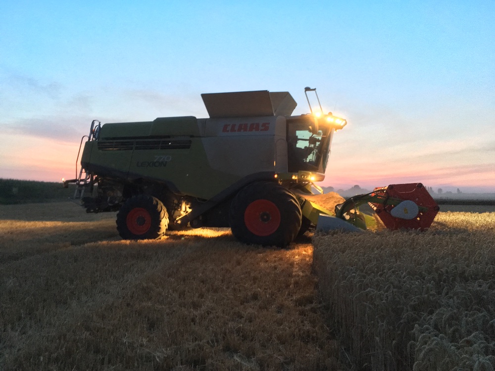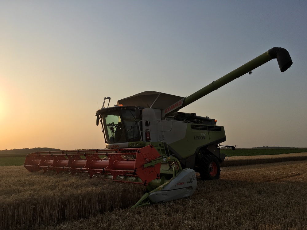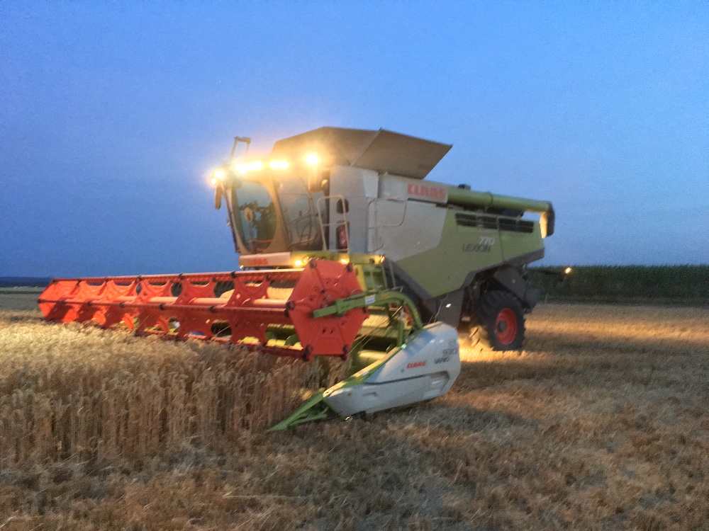 Pour nous sur la ferme les blés sont terminés avec une moyenne de 100qx, du jamais vu et une super qualité PS de 82 à 85, protéines de 11,5 à 11,6 et tout était sec!!! Il nous reste 5 ha sur la ferme de colza et 100 en prestation (blé, colza et orge de printemps).