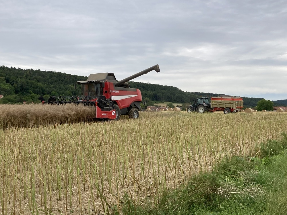 Moisson très moyenne cette année. Les oléagineux Colza et lin s’en sortent très bien, les céréales d’hiver blé et orge c’est moyen, et l’orge de printemps c’est catastrophique… Par contre rendement en paille correct 👍🏻