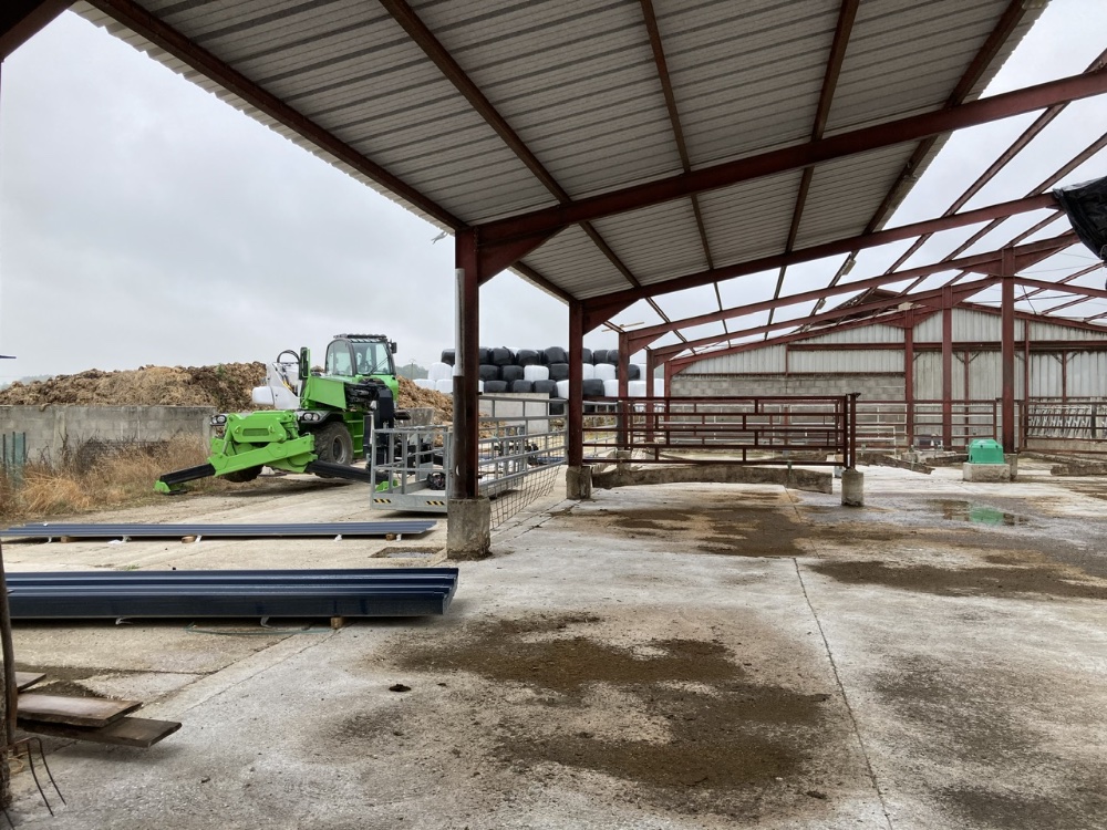 Effectivement, pose d’une centrale solaire sur la stabulation en même temps que la rénovation du toit. On s’est chargé de démonter les 850m2 de fibro, et l’entreprise s’occupe de la pose du bac acier et de l’installation solaire. Plus qu’à attendre le raccordement…