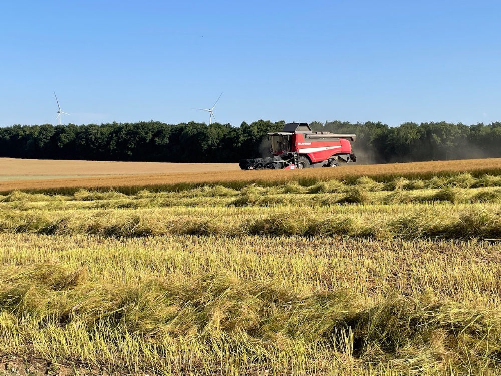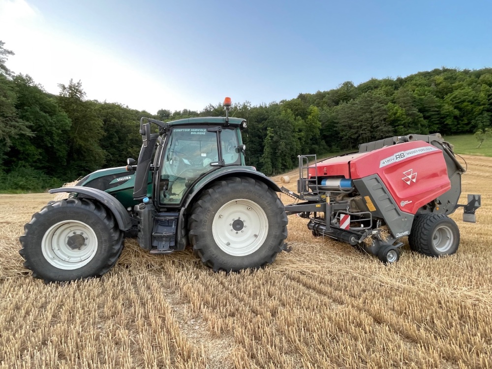 #821On continue dans les récoltes ! Le lin d’hiver semence et le début des blés ! Et un peu de paille bien sûr !