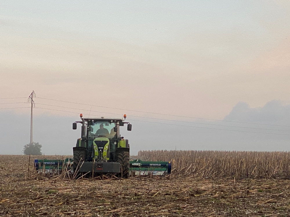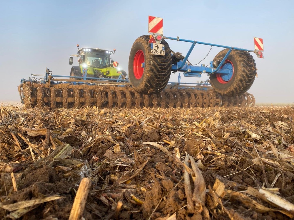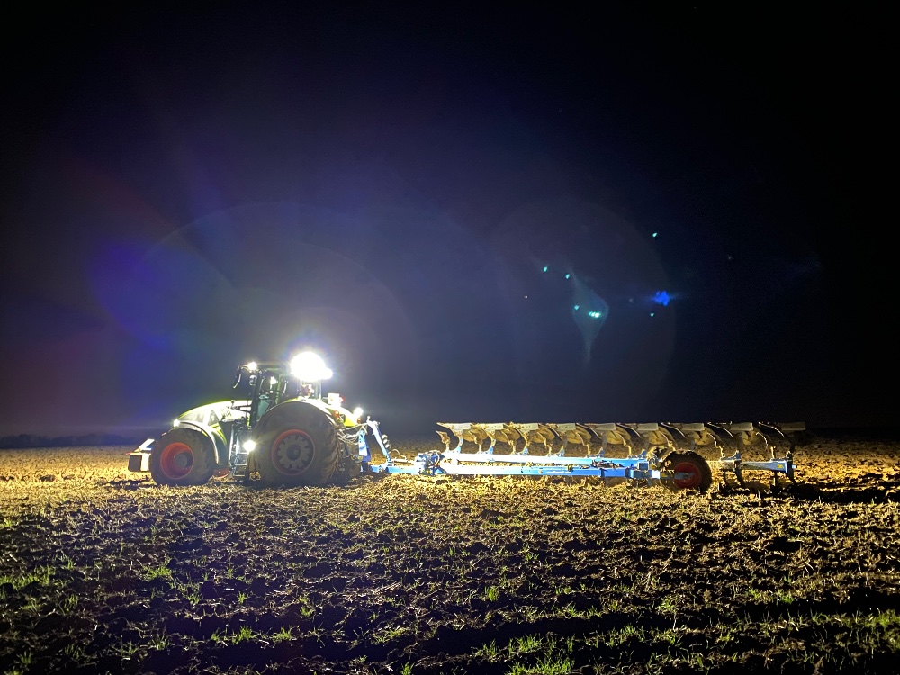Avec la 9 corps en faisant une grosse journée j’arrive à labourer 30ha dans les grandes parcelles. La a 2, on alimente le semoir et on fait 40ha/j sans souci.