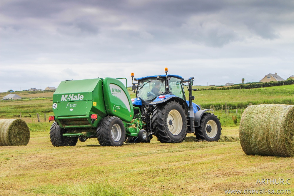 Pour débuter un ensemble plutôt banal rencontré sur les routes d'Irlande: un New Holland T6 et sa presse V660 McHale !