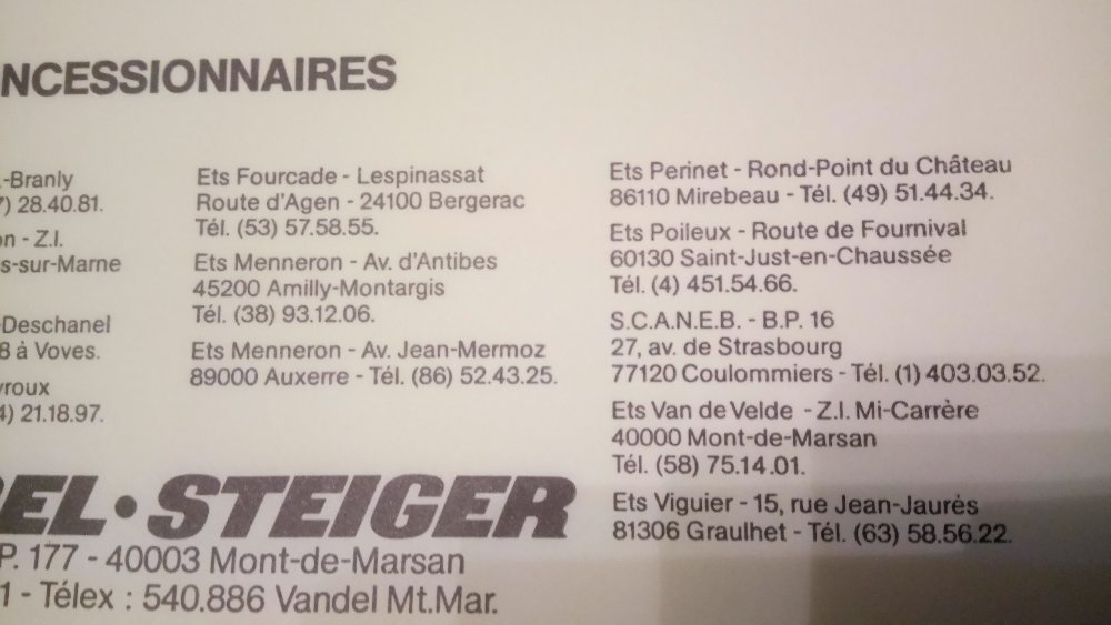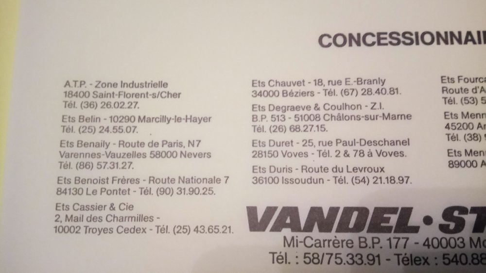 #77Merci Bruno pour ce doc, je ne le connaissais pas. Et par conséquent, je ne savais pas que notre distributeur local était Degraeve & Coulhon, gros concessionnaire champenois, ou alors qu'il y avait un distributeur en Seine et Marne. Ils n'ont pas du en vendre des masses...