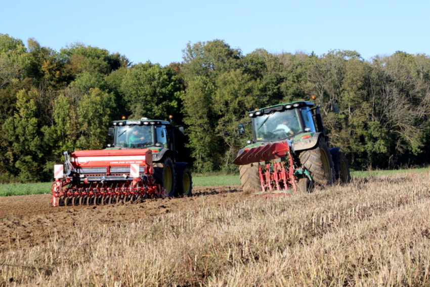 #337Un autre chantier mené par un Fendt 927 avec Kompaktor Lemken 8 mètres et un John Deere 7810 avec semoir 18 rangs Monosem