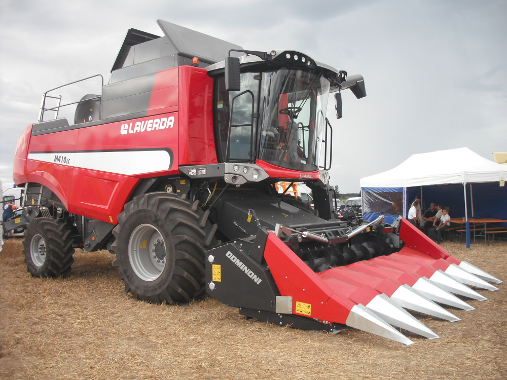 Laverda M410 LC avec cueilleur à mais Dominoni